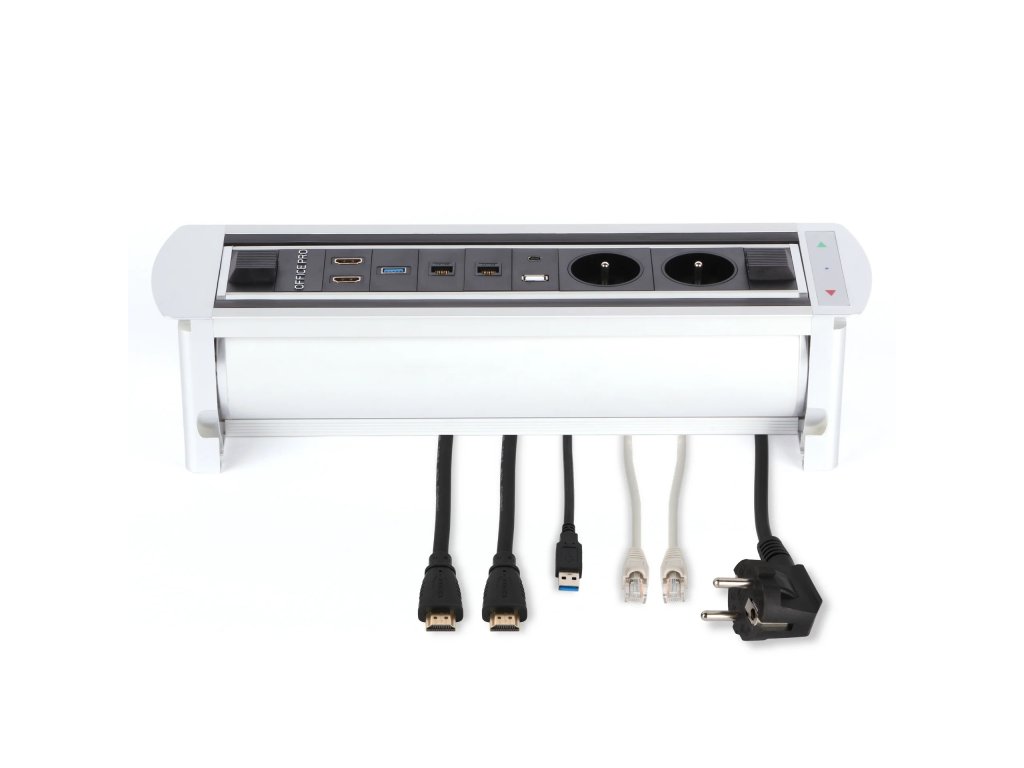 - 2x elektrická zásuvka, 2x data, USB/USB C nabíjení, 2x HDMI, 1x USB 3,0