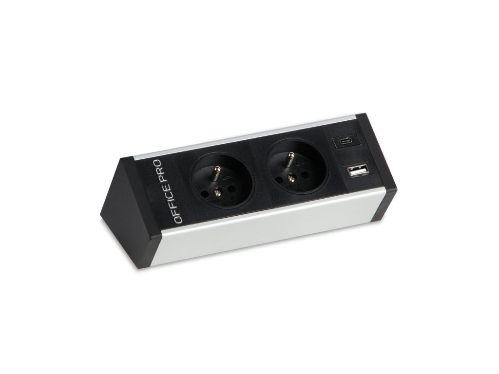 - Pevný panel na hranu stolu, černý, 2 x elektrická zásuvka, nabíjecí USB A+ USB C, nabíjecí USB: ANO