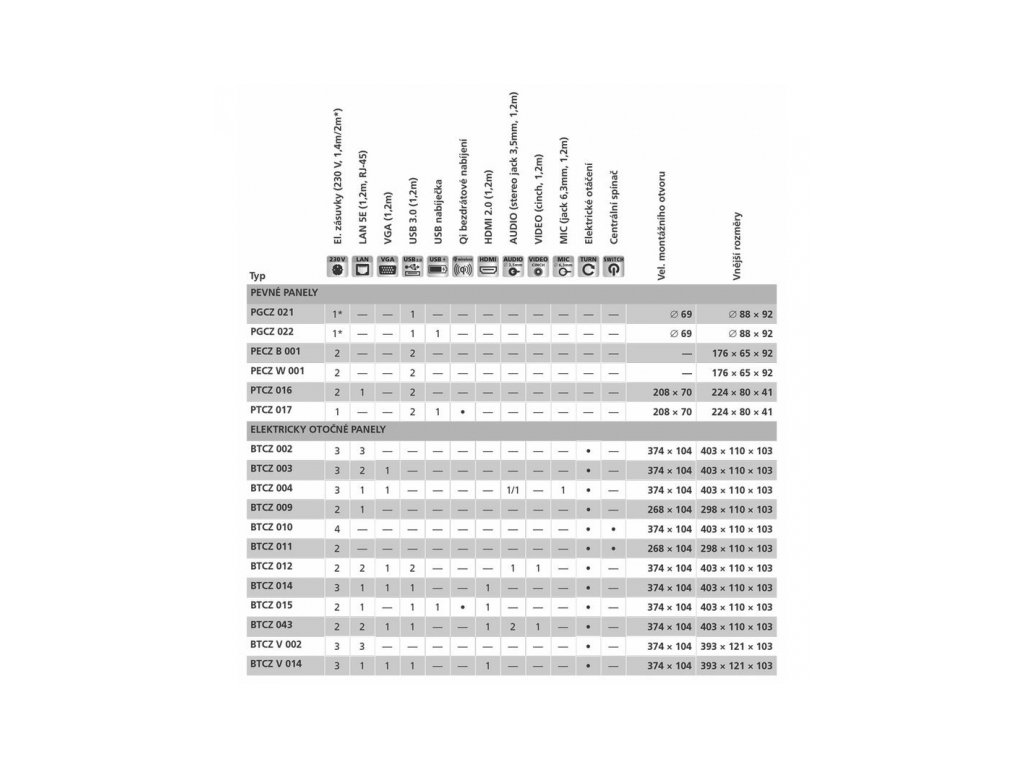 Pevný panel, 1x el., 1x Qi bezdr. nabíjení, 2x USB 3.0, 1x USB nabíjení