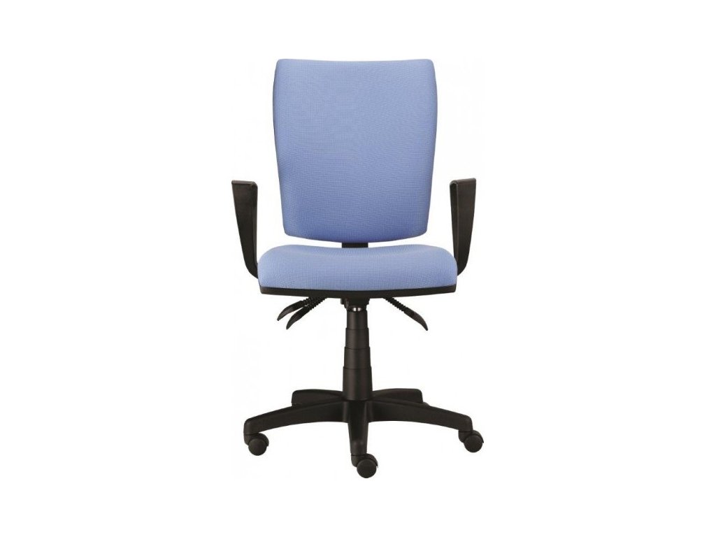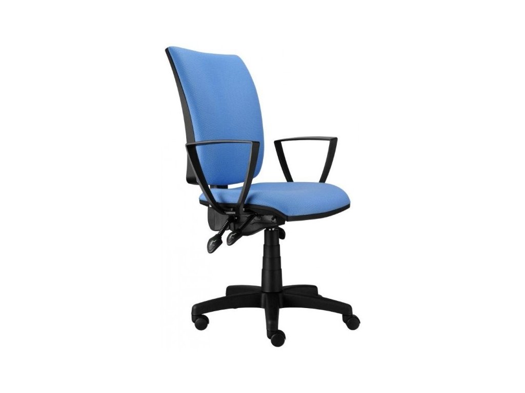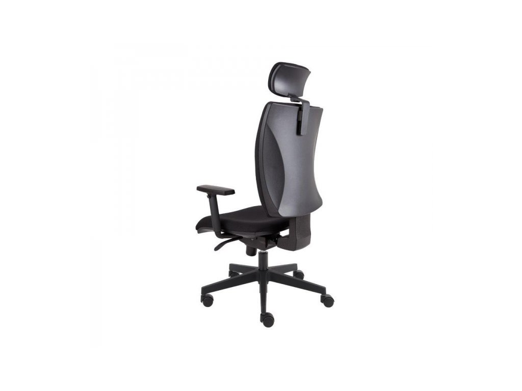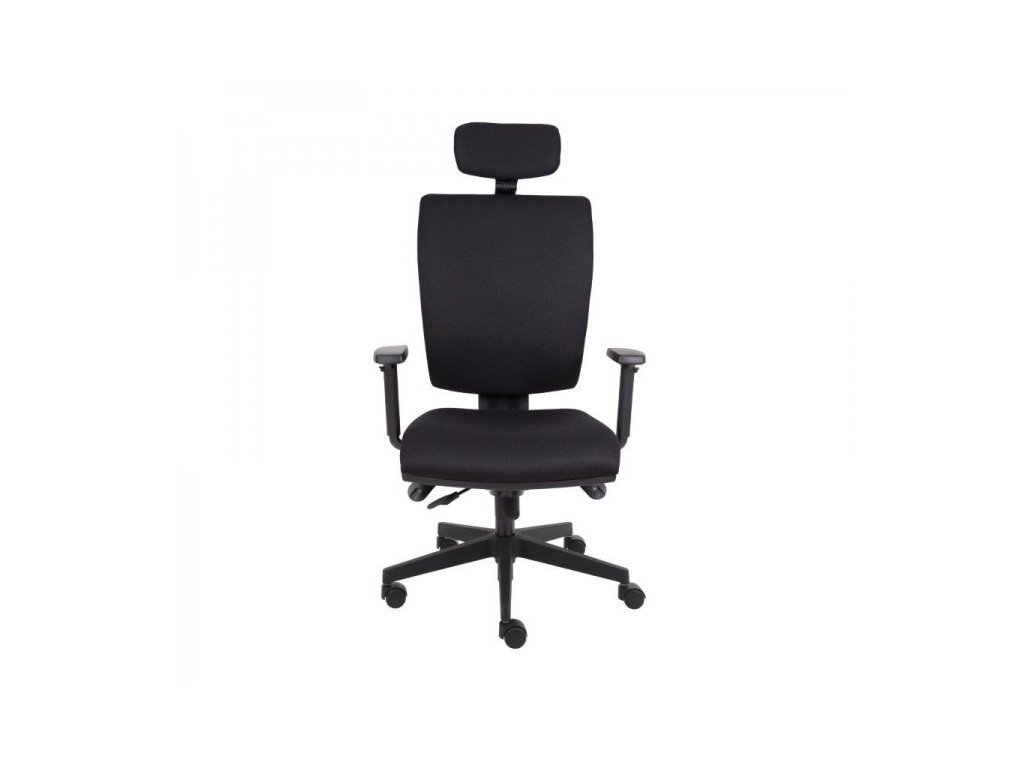 Moderní kancelářská židle s vysokým opěrákem a bohatým čalouněním sedáku i opěráku. Výškovou stavitelnost opěráku zajišťuje systém UP-DOWN. Hmotnost 18 kg. Šířka sedáku 51 cm.