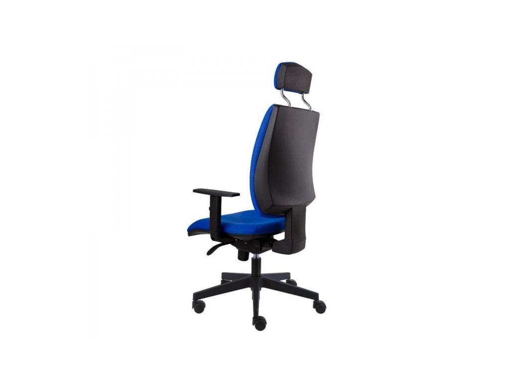 Moderní kancelářská židle s vysokým opěrákem a bohatým čalouněním sedáku i opěráku. Výškovou stavitelnost opěráku zajišťuje systém UP-DOWN.