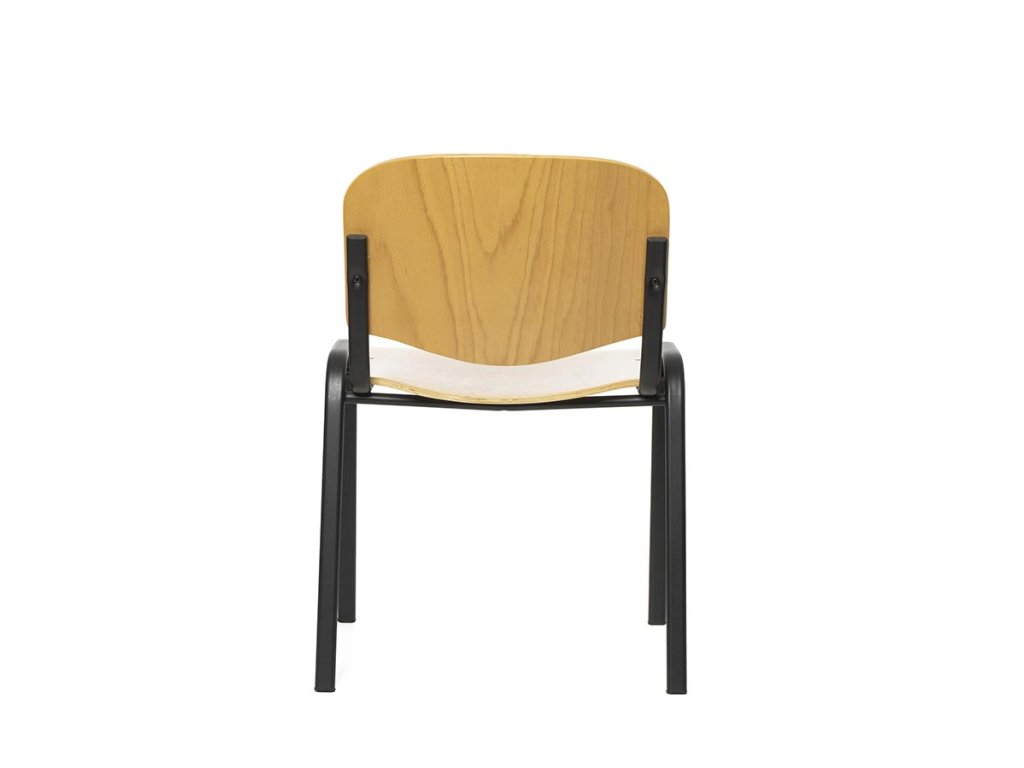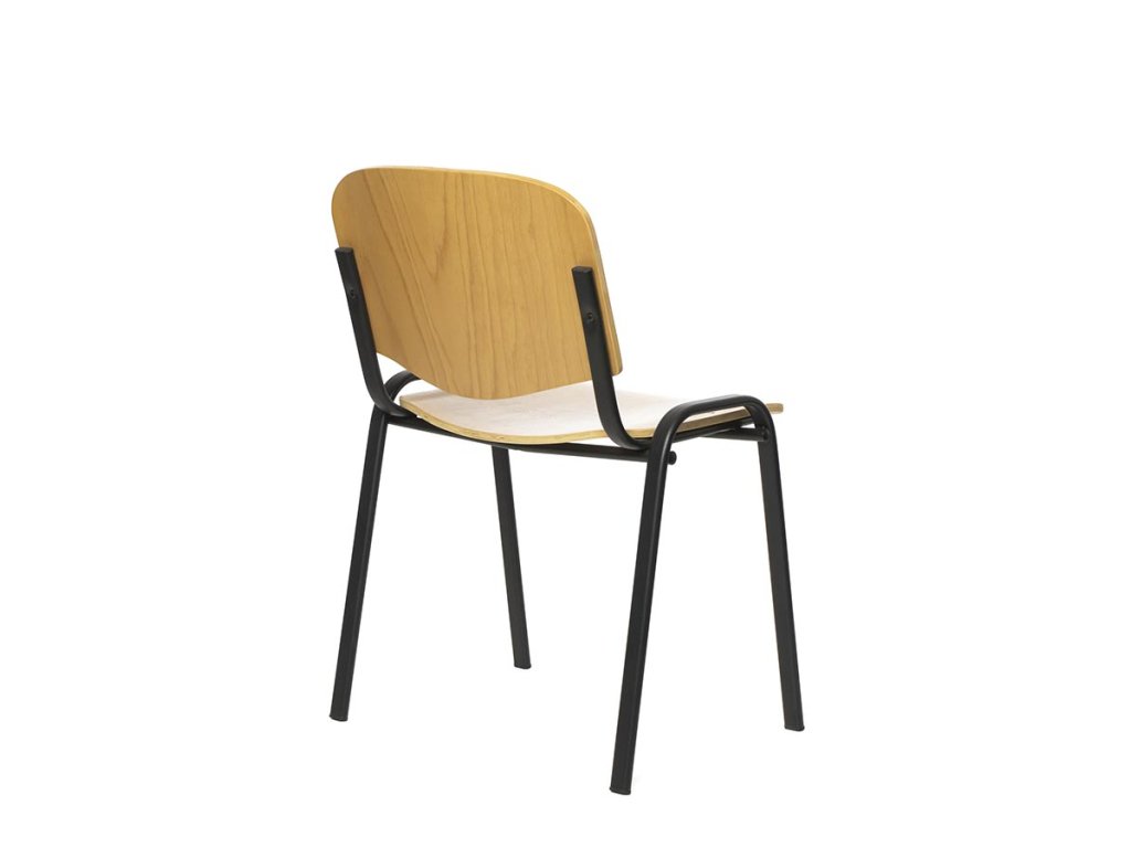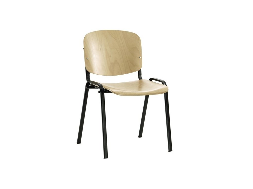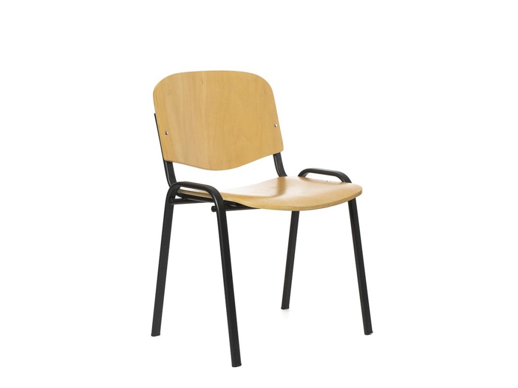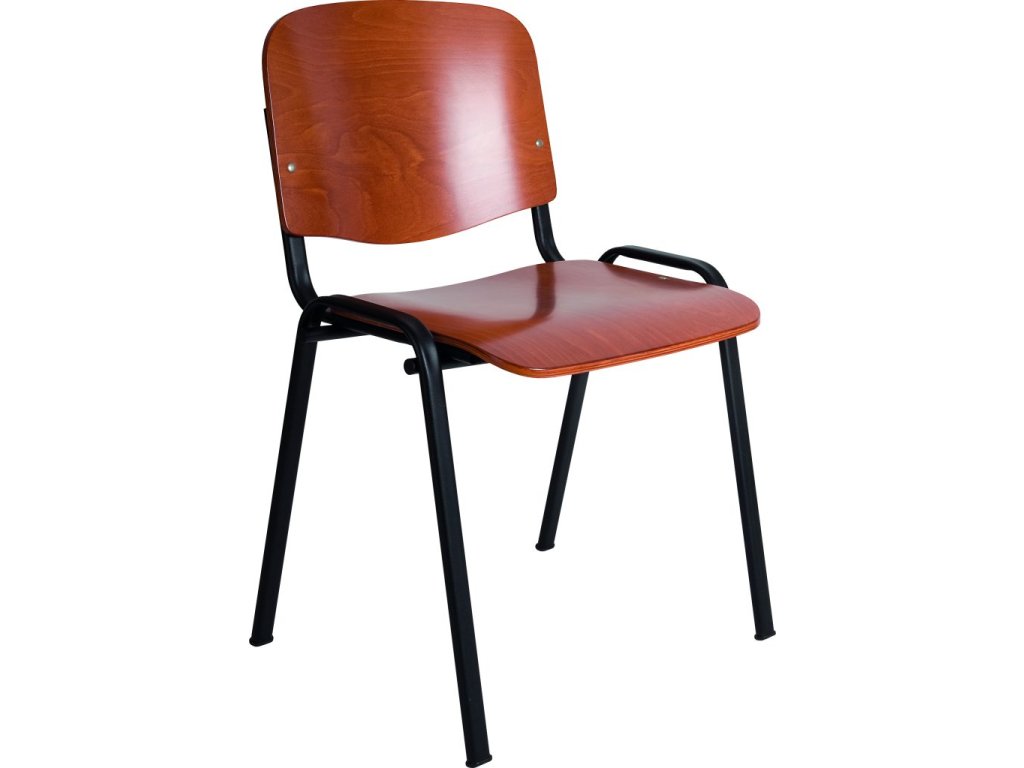 Klasická ekonomická, stohovatelná, konferenční židle bez područek s pevnou ocelovou 1,2 mm silnou kostrou a s dřevěným mořeným sedákem i opěrákem.
