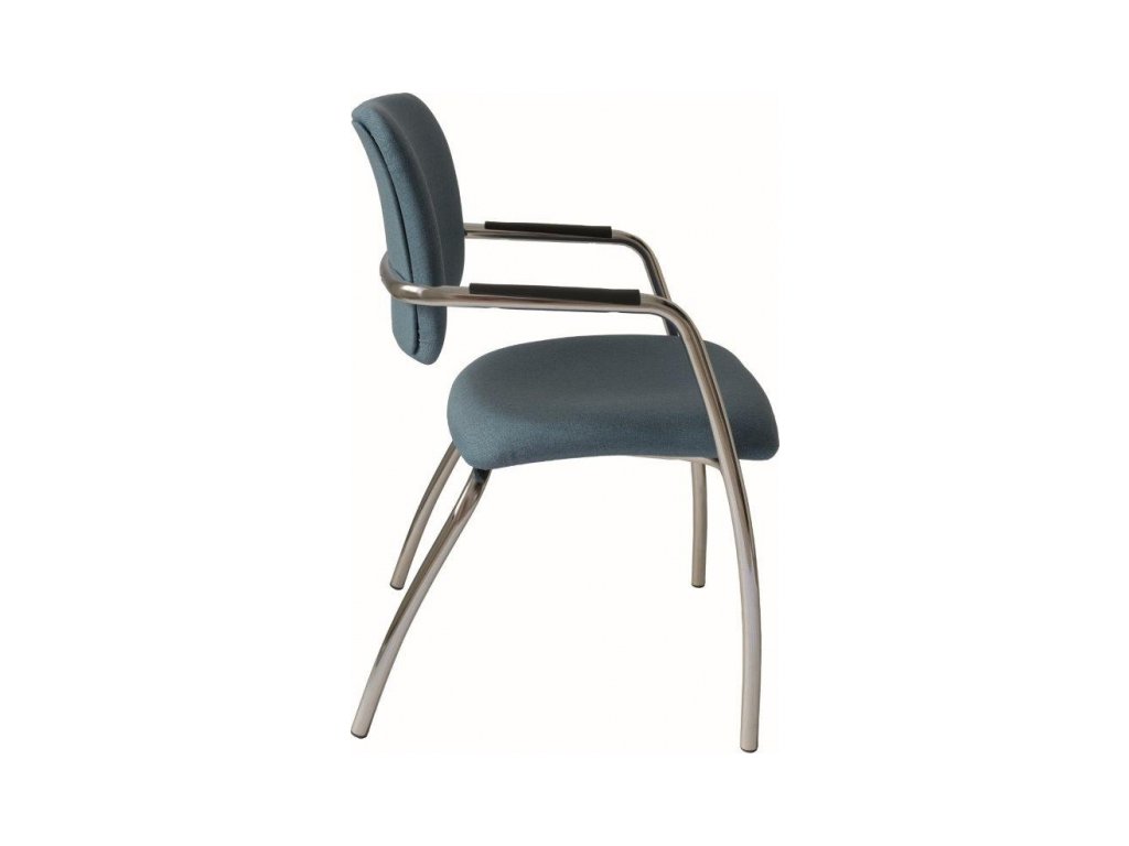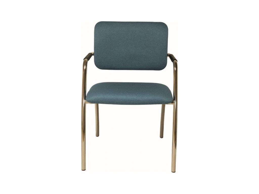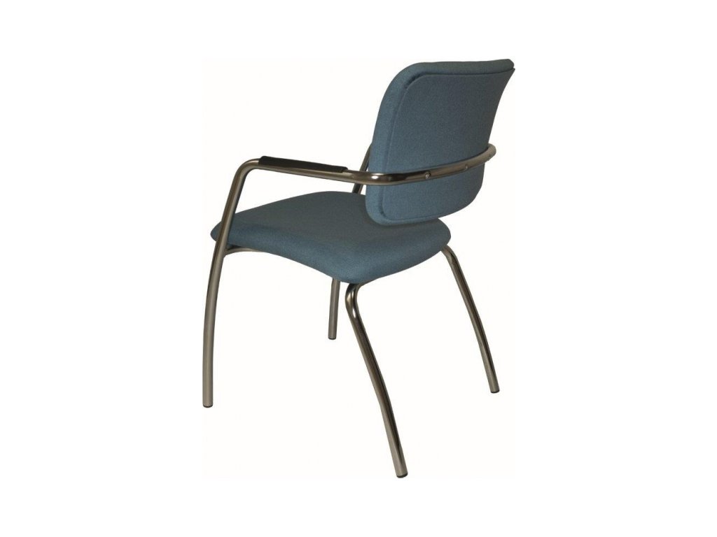 Moderní stohovatelná konferenční židle s čalouněným sedákem a čalouněným opěrákem. V mnoha moderních typech látek a širokém výběru barev. Hmotnost 9 kg. Šířka sedáku 49 cm. Celková šířka 56 cm.