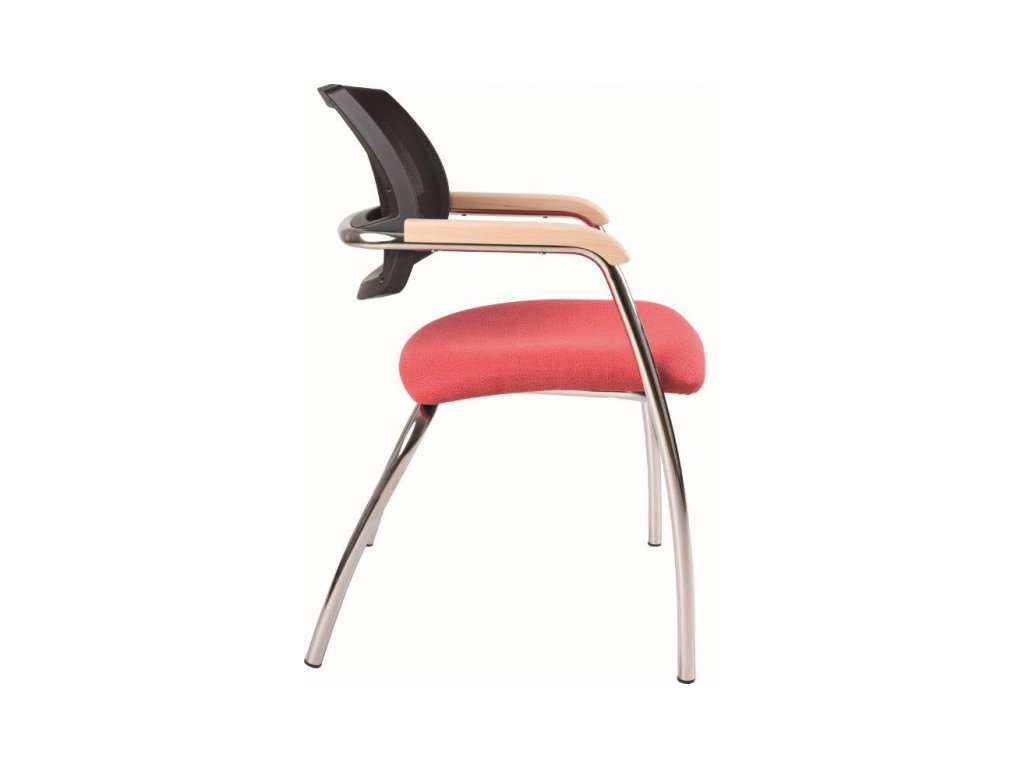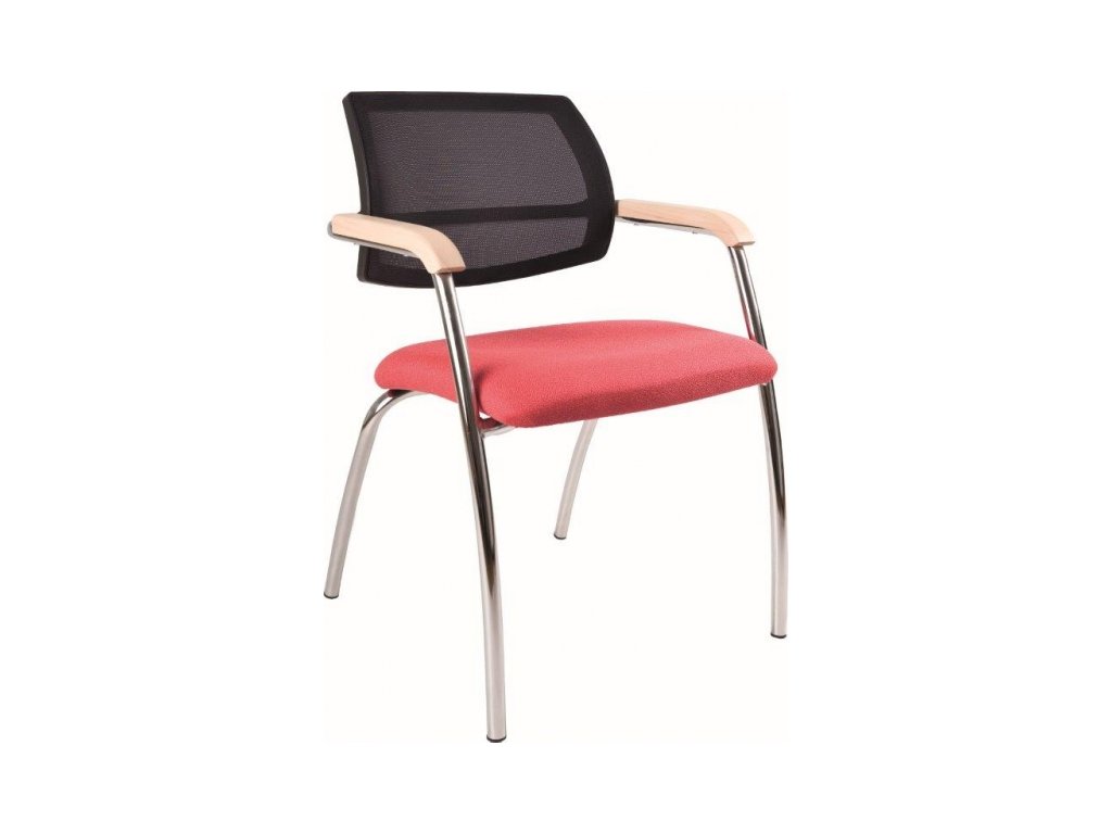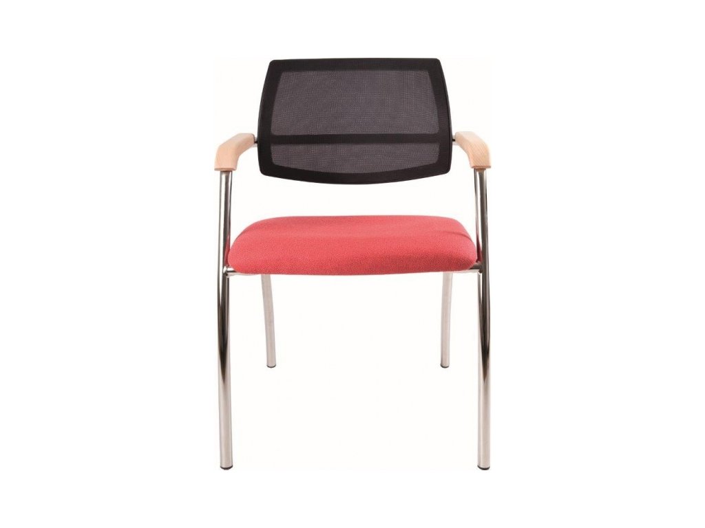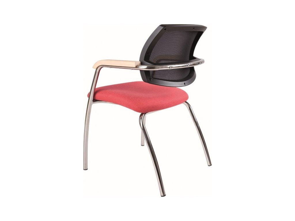 Moderní stohovatelná konferenční židle s čalouněným sedákem a síťovaným opěrákem (barva sítě černá). V mnoha moderních typech látek a širokém výběru barev. Hmotnost 9 kg. Šířka sedáku 49 cm. Celková šířka 56 cm.