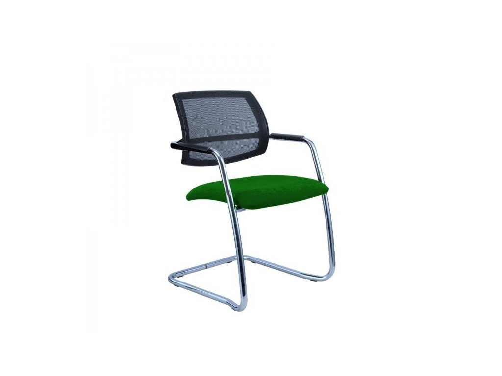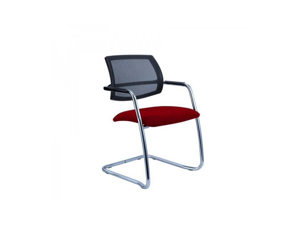 Moderní stohovatelná konferenční židle s pérovou konstrukcí, čalouněným sedákem a síťovaným opěrákem (barva sítě černá). V mnoha moderních typech látek a širokém výběru barev. Hmotnost 9 kg. Šířka sedáku 49 cm. Celková šířka 56 cm.