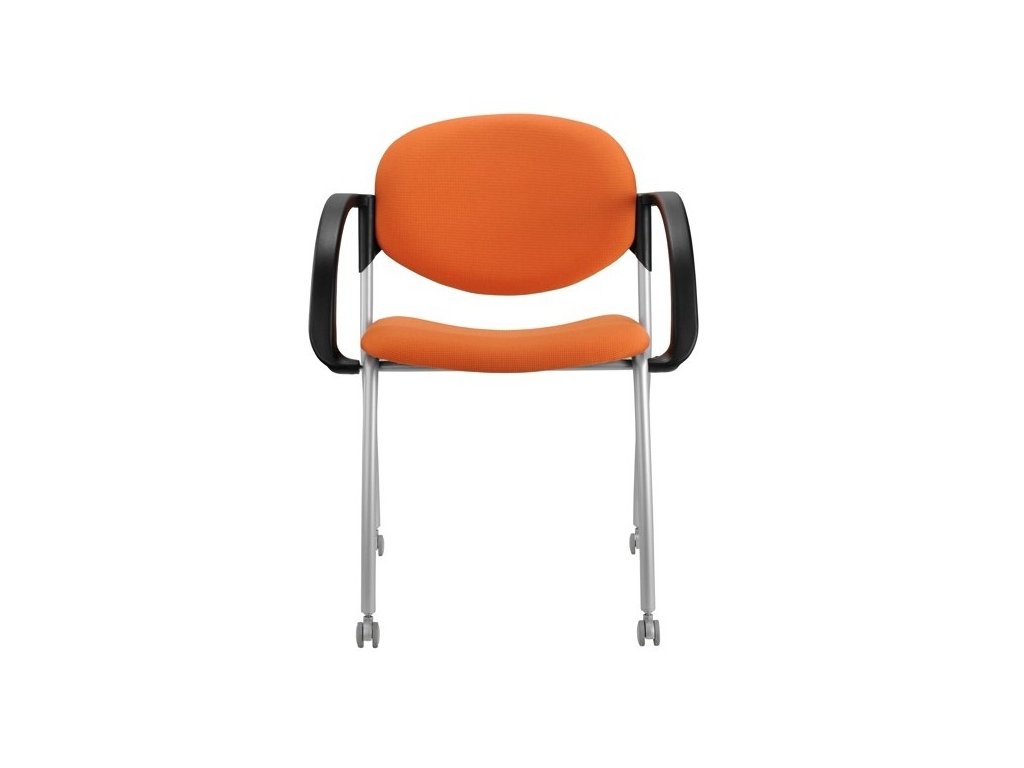 Stohovatelná konferenční židle s pevnou ocelovou kostrou.