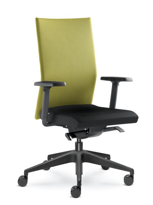 kancelářská židle, vysoký opěrák čalouněný samonosnou síťovinou Goyal dle výběru, synchronní mechanika SYS s bočním nastavením tuhosti opěradla, plynový píst, kříž nylon černý, kolečka 60 mm, možnost ocelové pérové kostry |
